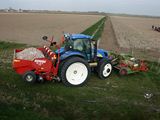 NH TS110A Plus met een Baselier frontfrees en Grimme GL 34 K aardappelpoter.