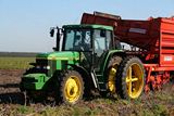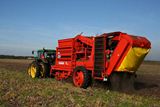 De aardappels werden gerooid met deze JD 6610 met Grimme DR 1500 rooier.