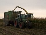 Nog meer energiemaïs hakselen. Deze keer door loonbedrijf A. van der Laan uit Meeden met een New Holland FR 9060, NH TM 140 met Veenhuis Super silagewagen en Fendt 924 met Schuitemaker Rapide 145 opraap-dubbeldoelwagen van Peter Ziel uit Kiel Windeweer.
