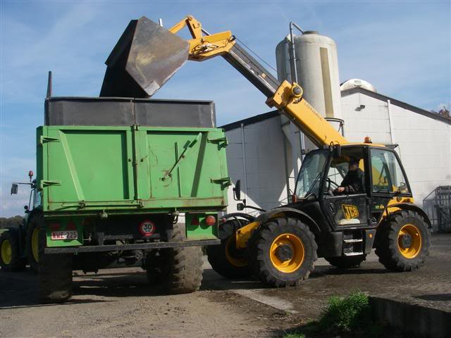 Bietenpulp laden om door de maïskuil te kunnen mengen.