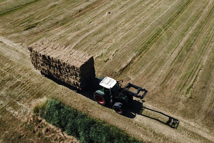 NH met 2 balenvorken van loonbedrijf Guiljam uit Sint Annaland.