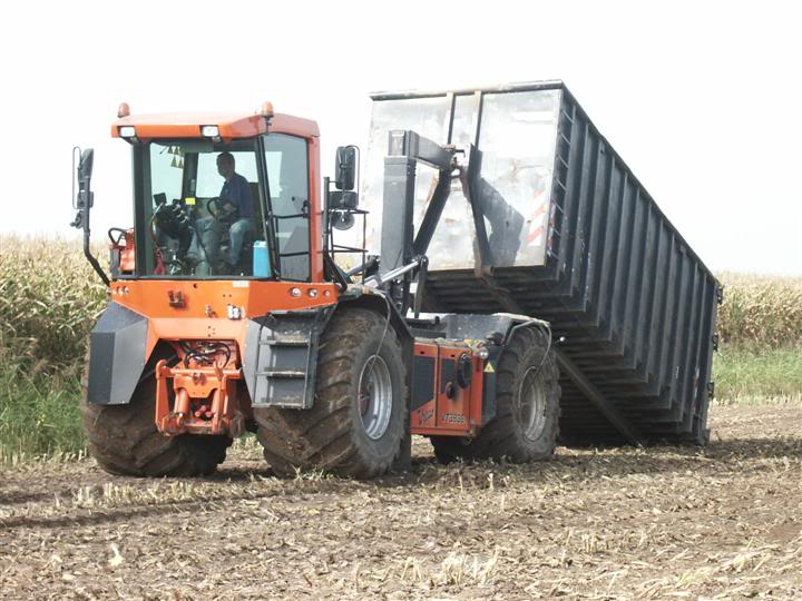 Fendt Favorit 916 Vario met een 3 assige Jan Veenhuis haakarm carrier.