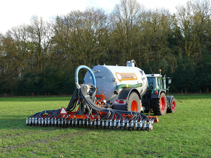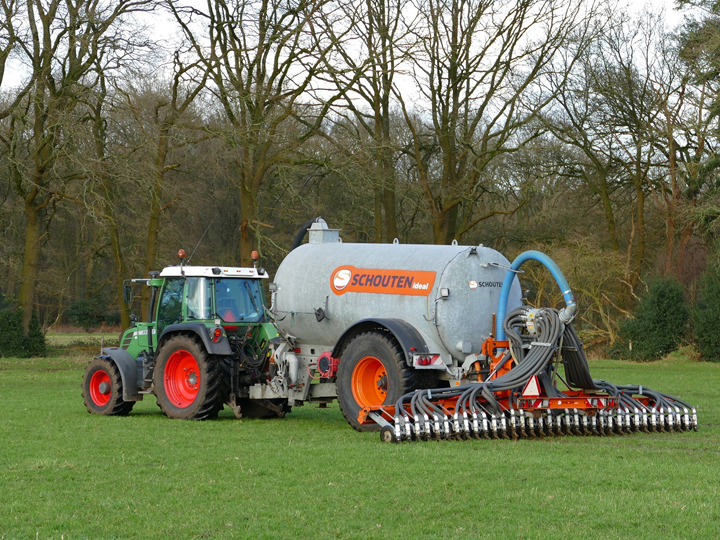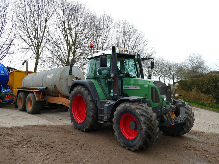 Dienstverlening Willem Bloemendal uit Elspeet aan het mest injecteren in Uddel met een Fendt 312 Vario TMS en Schouten Ideal mesttank en Spider bemester.