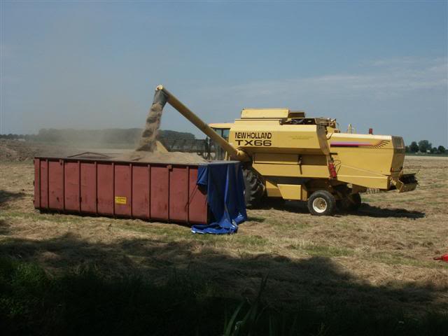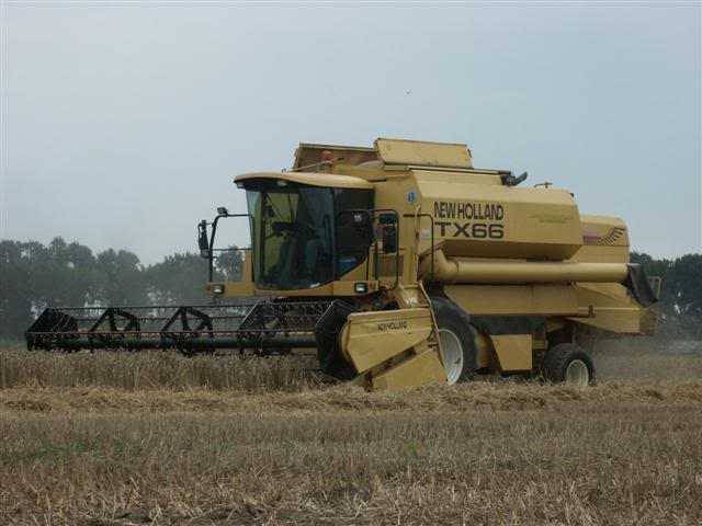 New Holland TX 66 combine bezig graszaad te dorsen.