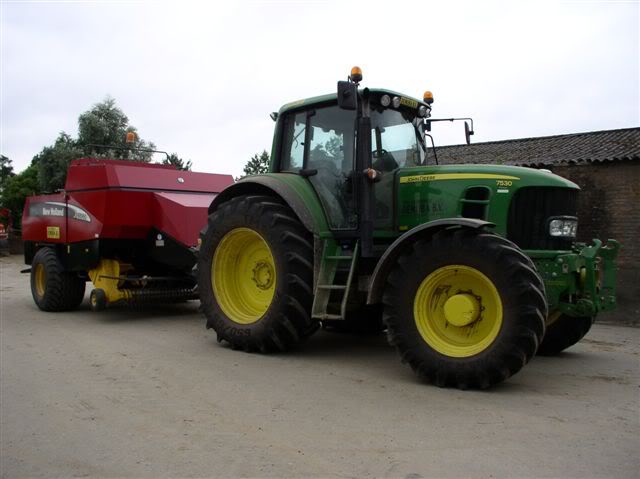 JD 7530 met een NH BB960A grootpakpers.