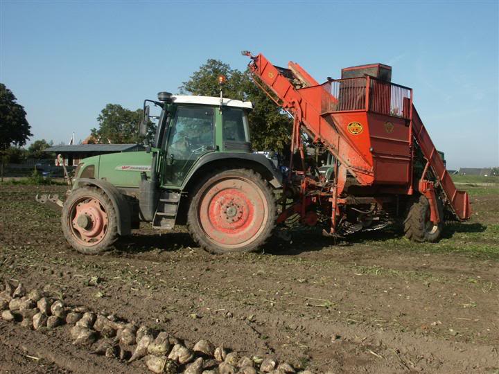 Bieten laden met een Fendt Farmer 410 Vario met een WKM bietenlader en Fendt Favorit 714 Vario met een Miedema HST 170 kipper.