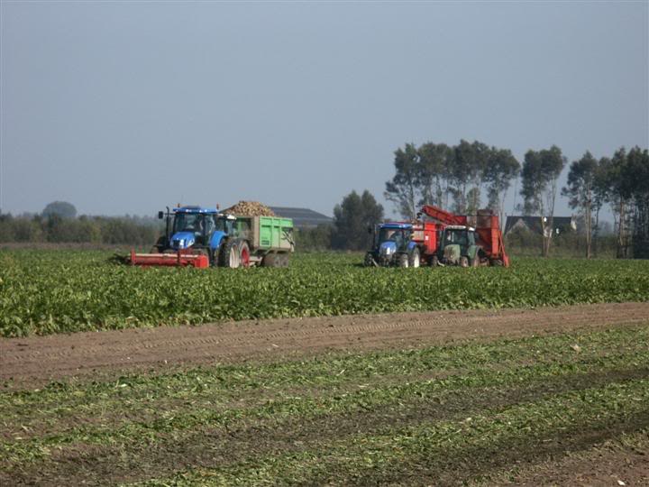 NH T6070 met een loofklapper en Gilles bietenrooier van Westende.