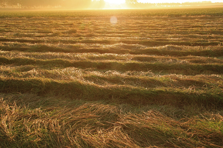 Akkerbouwer Frank Tas uit Waterlandkerkje is graszaad aan het maaien op de vroege ochtend van 11 juli.
