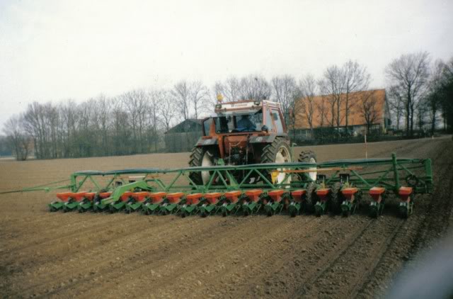 Suikerbieten zaaien met een Fiat 100-90dt met 18 rijige Vicon Monozentra zaaimachine van loonbedrijf Oegema uit Espel.
