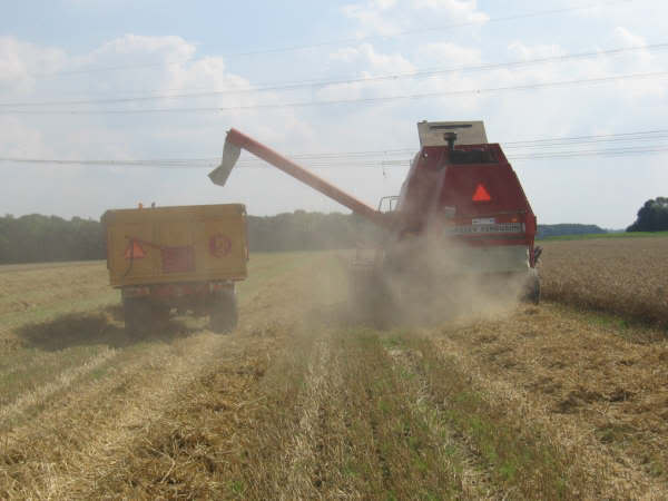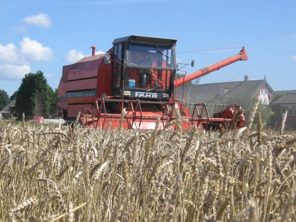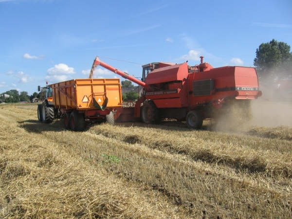 Dorsen bij akkerbouwer J Groeneveld uit Uppel met een Fahr 1600 combine en een Renault Ares 566rz met Miedema kipper.