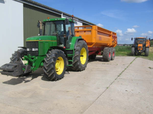 Dorsen met een door een MF 31. De trekkers zijn een JD2250 2wd met Mullié 10 tonner en een JD 2250 4wd met Mullié 10 tonner.