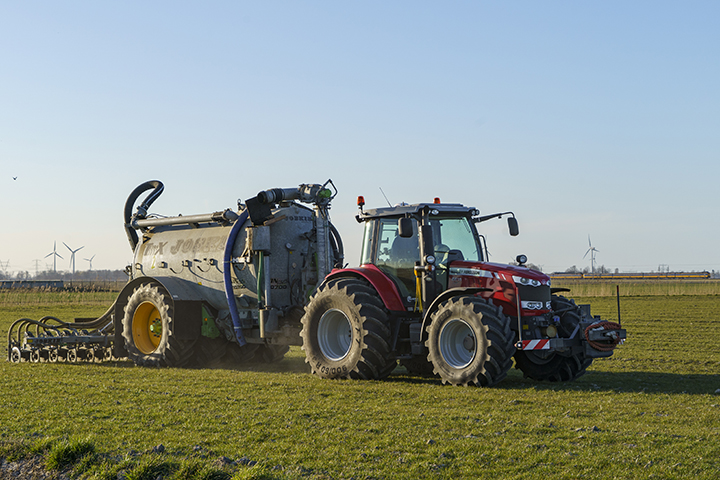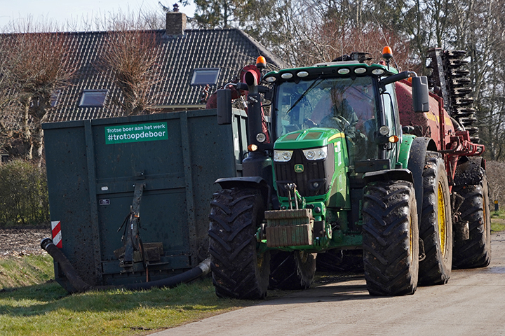 Fendt 720 Vario S4 met Veenhuis mesttank en bouwlandbemester van landbouwbedrijf Topper uit Gieterveen.