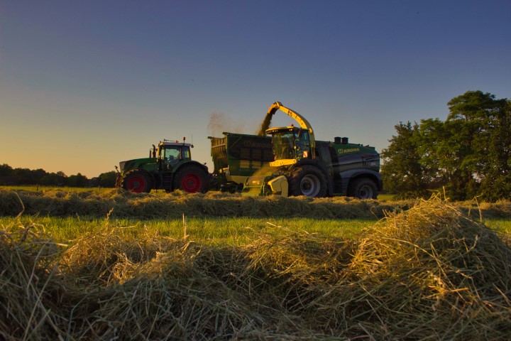 De Krone Big X 1180 hakselaar van Wiverco is het topmodel van Krone. Sander wilde deze dan ook graag eens op de foto's zetten. Op een mooie zomeravond is hij naar de zuiderburen gereden en heeft daar zijn slag geslagen. De Krone dubbeldoelwagens die nog maar net in gebruik waren genomen maken de serie af.