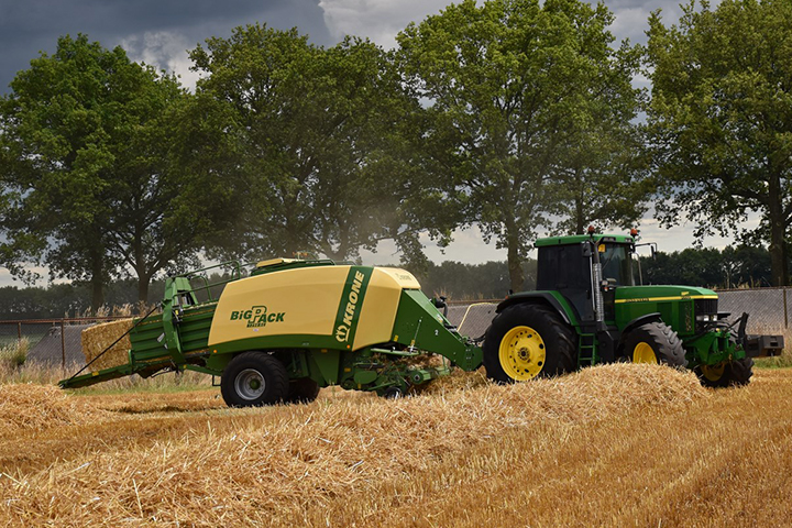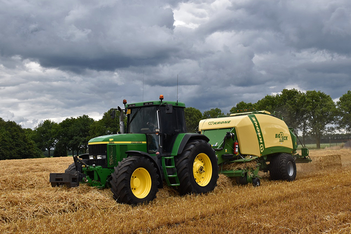 John Deere 7710 met Krone BigPack 1290 XC van Dylan Reij uit Laudermarke.