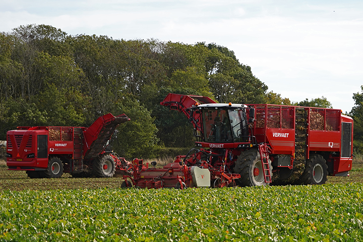 Voor deze Engelse fotoreportage bezoeken we de loonwerker Paul Stent. Zijn specialiteit is bieten rooien. Met 2 Vervaet Q616 bunkerrooiers wordt samen in 1 perceel gewerkt. Daaronder ook een gloednieuwe machine. De afvoer was in handen van Fendt en JD.