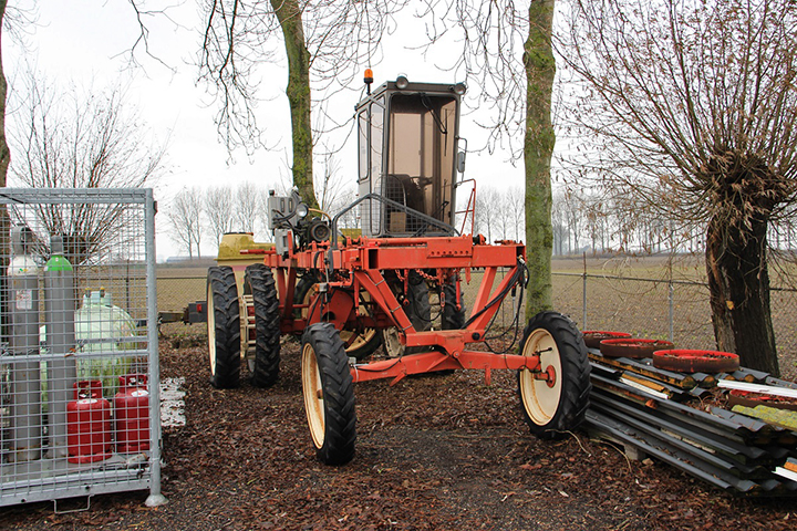In een hoek achterop het terrein enkele iconen uit het verleden: de Vicon pendelstrooier en schudeg.