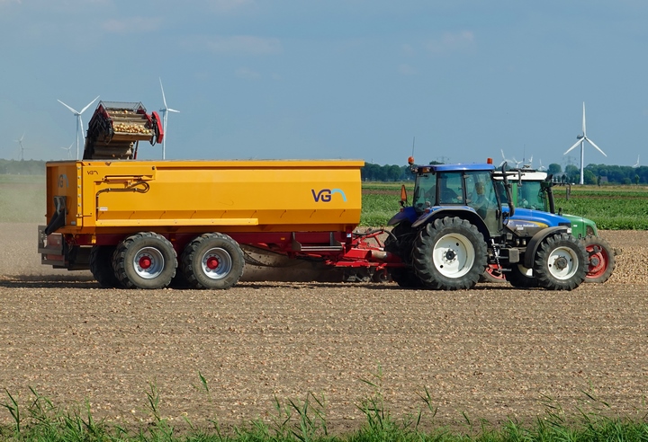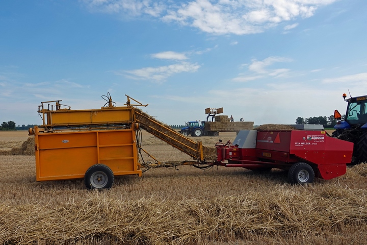 Stropersen door Loon- en Grondverzetbedrijf Rozeboom 't Harde bij Grubben met een New Holland TS 115 + Lely Welger AP 830 stropers voorzien van een Hack verzamelwagen.