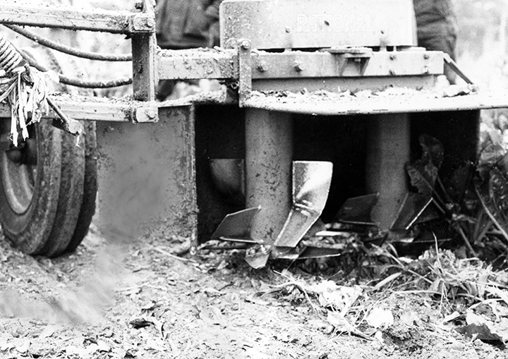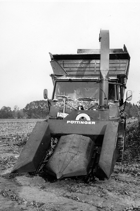 Prototype van de Standen Continental bietenrooier. Een machine die veel weg heeft van de Duitse bunkerrooiers.