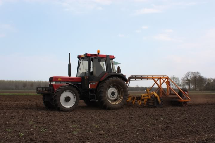 Case IH 845xl Plus met Rumptstad cultivator en vorenpakker bezig aardappelland klaar te leggen.