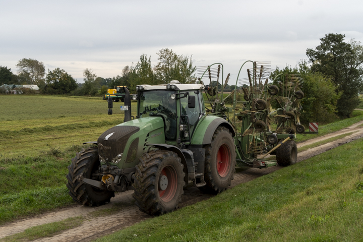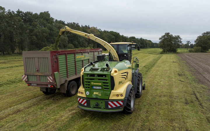In het noorden van Duitsland is loonwerker BS Agrar uit Kirchlinteln nog bezig om flink wat herfstgras op te ruimen. Met de nattigheid valt het hier op de meeste percelen mee.