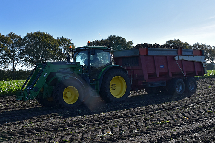Tot slot een John Deere 6150R met Quicke Q66 voorlader en Vaia kipper van Manning.