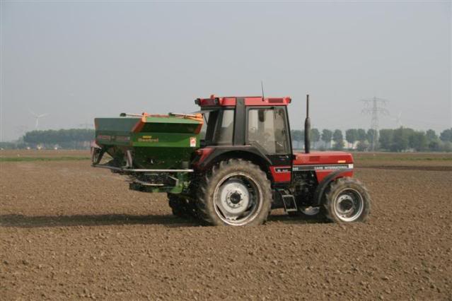 Case International 845xl Plus met een Amazone ZA-M ProfIS 1500 L 1000 kunstmeststrooier van Dick Barendrecht uit Geervliet.