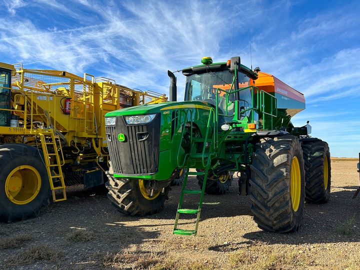John Deere 4940 met Amazone ZG-TS-10001 kunstmeststrooier.