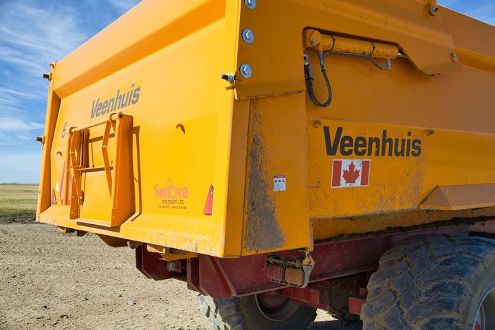 Op een van de andere vestigingen staat deze John Deere 8270R met Veenhuis kipper voor de stortbak.