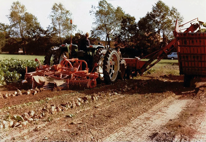 De Oliver 854, nu met een cabine, tijdens het bieten rooien. De trekker was eigenlijk een Same Ariete.