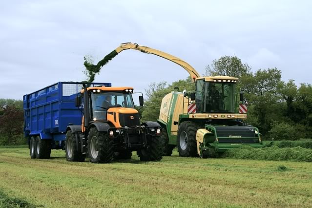 Krone Big X 650 en JCB Fastrac met Stewart silagekipper.