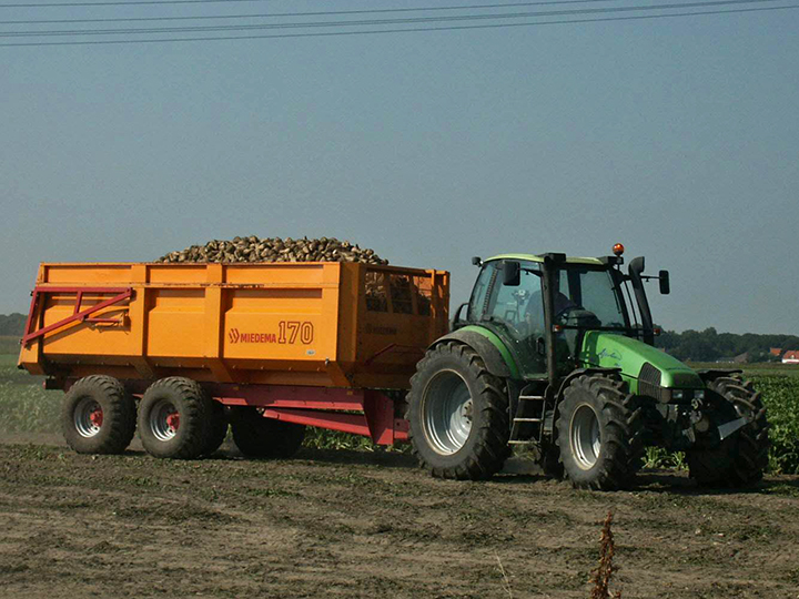 Deutz-Fahr Agrotron met Quicke voorlader en Miedema kipper.