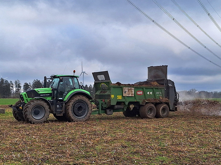 Deutz-Fahr Agrotron 6215 TTV Warrior met Hawe strooier.