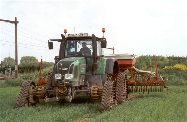 Fendt Favorit 916 Vario met een Accord Pneumatic DL zaaimachine.