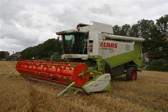Claas Lexion 460 Evolution lost een tank graan bij een Claas Axion 820 met Miedema HST 175 kipper van loonbedrijf L. Kats uit Numansdorp.