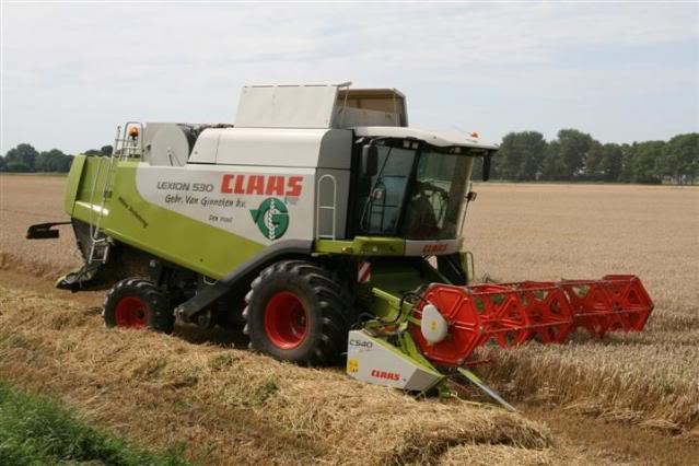 Claas Lexion 530 met een opklapbaar C540 maaibord van loonbedrijf Van Ginneken uit Den Hout.