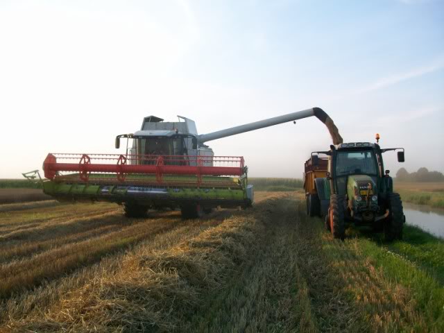 Voor de oogst werd er dit jaar een Claas Lexion 570C met V750 maaibord bijgehuurd.