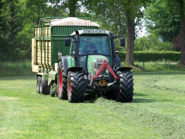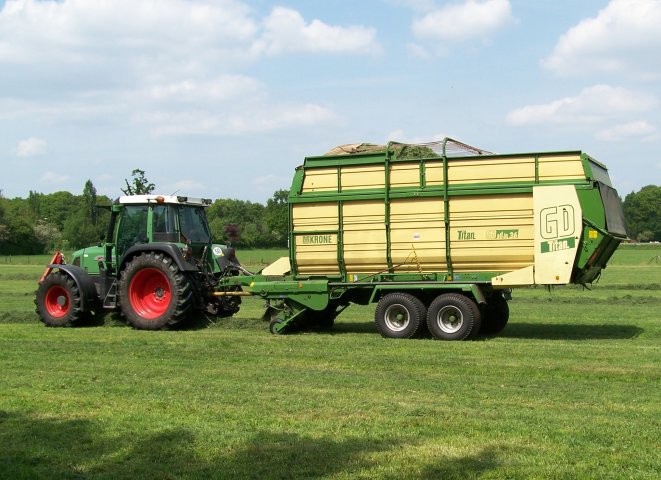 Gras inkuilen met Fendt Farmer 412 Vario en Krone Titan GO Allin 36 opraapwagen van Potman/De Weert uit Markelo.