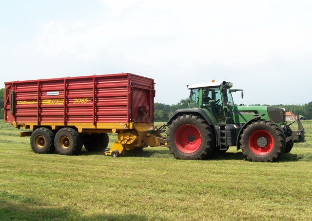Gras inkuilen met een Fendt 920 Vario en Schuitemaker Rapide 2085 opraap- dubbeldoelwagen van loonbedrijf Maas uit Markelo.