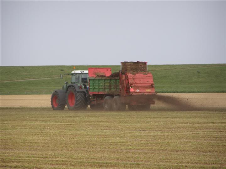 En nu op een iets grotere schaal door loonbedrijf Boven uit Finsterwolde met een Fendt 817 en 930 beide met Hawe breedstrooiers. Geladen werd er door een Liebherr 900 kraan.