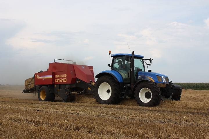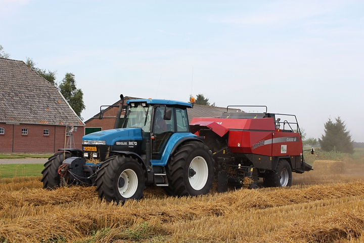 New Holland/Ford 8670 met Case International LBX432 grootpakpers van loonbedrijf Mantingh uit Valthermond.