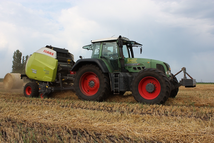Fendt Favorit 926 Vario met Claas Variant 385 rondebalen pers van handels- en loonbedrijf H. Kuper uit Klazienaveen.