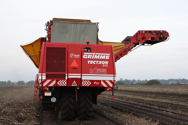 Grimme Tectron 415 bezig aardappels aan het rooien in Emmercompascuüm van loon- en opschepbedrijf Corné Vinke uit Luttelgeest.