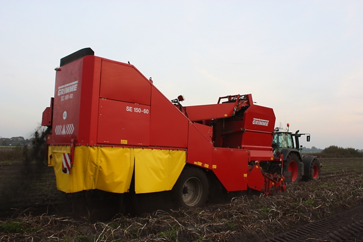 Op hetzelfde perceel reed ook deze Fendt 820 Vario met Grimme SE 150-60 rooier van Deddens.