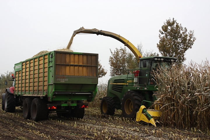 Energiemais hakselen door loonbedrijf Becker uit Nieuwe Pekela met een John Deere 7400 hakselaar en Case International CVX 1195 met Joskin Silospace 22/45 silagewagen.