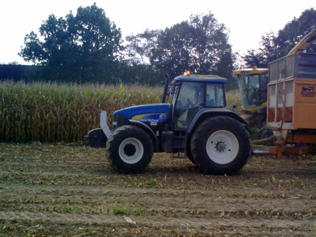 Claas Jaguar 870 met zes rijige maisbek en New Holland/Ford 8670 met Dewa silagewagen van loonbedrijf Filip Breda uit Lierde.