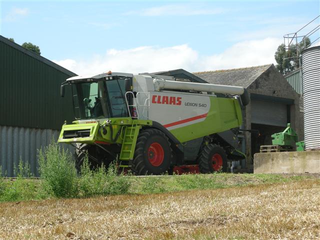 Claas Lexion 520 met C600 maaibord en John Deere 7430 met Richard Western RC14 kipper.
