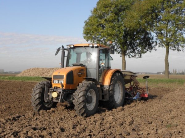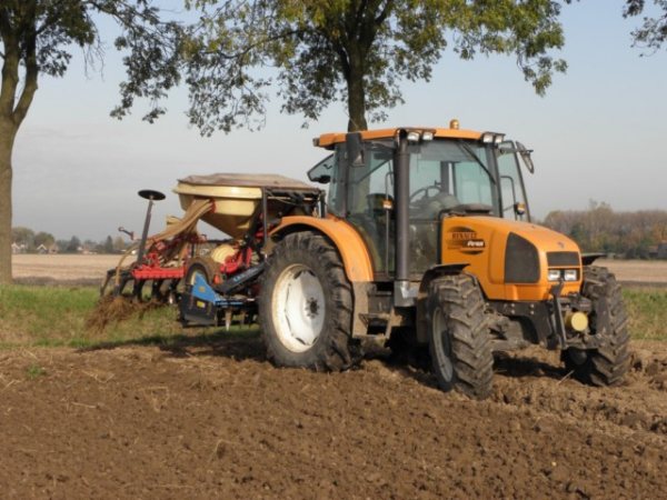 Renault Ares 566rz met Sicma kopeg en Vicon zaaimachine van Koops uit Dussen.