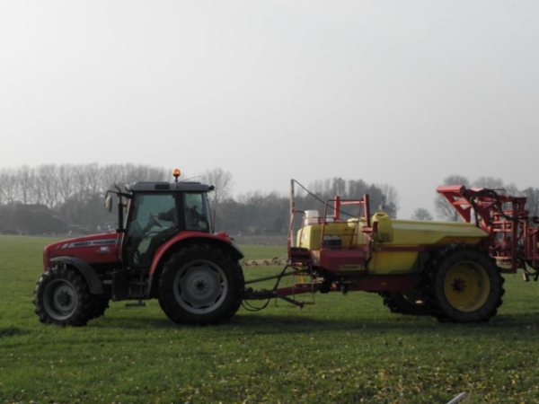 Massey Ferguson 5455 met Rau veldspuit van Van Mersbergen uit Drongelen.