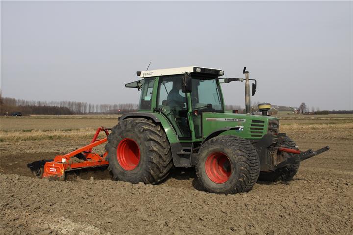 Fendt Farmer 308 'Holland Farmer' met een 4m brede Maschio kopeg van Leen van Nieuwenhuijzen uit Nieuwe-Tonge.