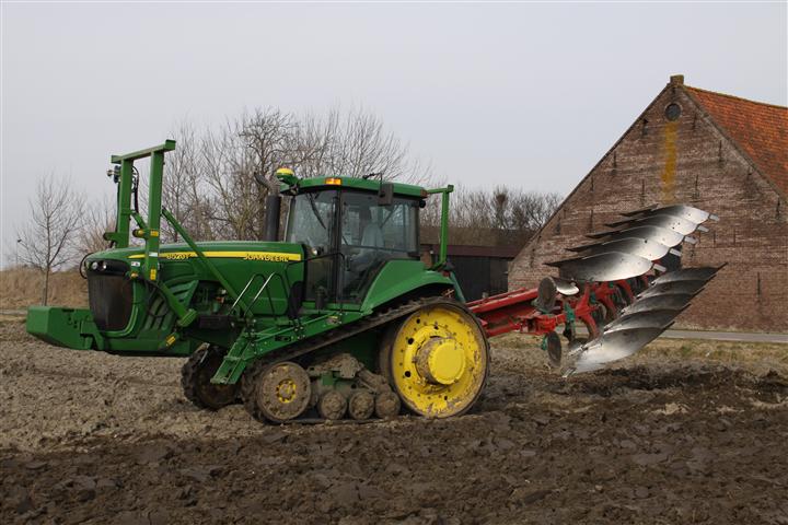 JD 8520T met Kverneland EO 100 Variomat vijf schaar ploeg van Gebr. Mastenbroek bloembollen uit Sommelsdijk.
